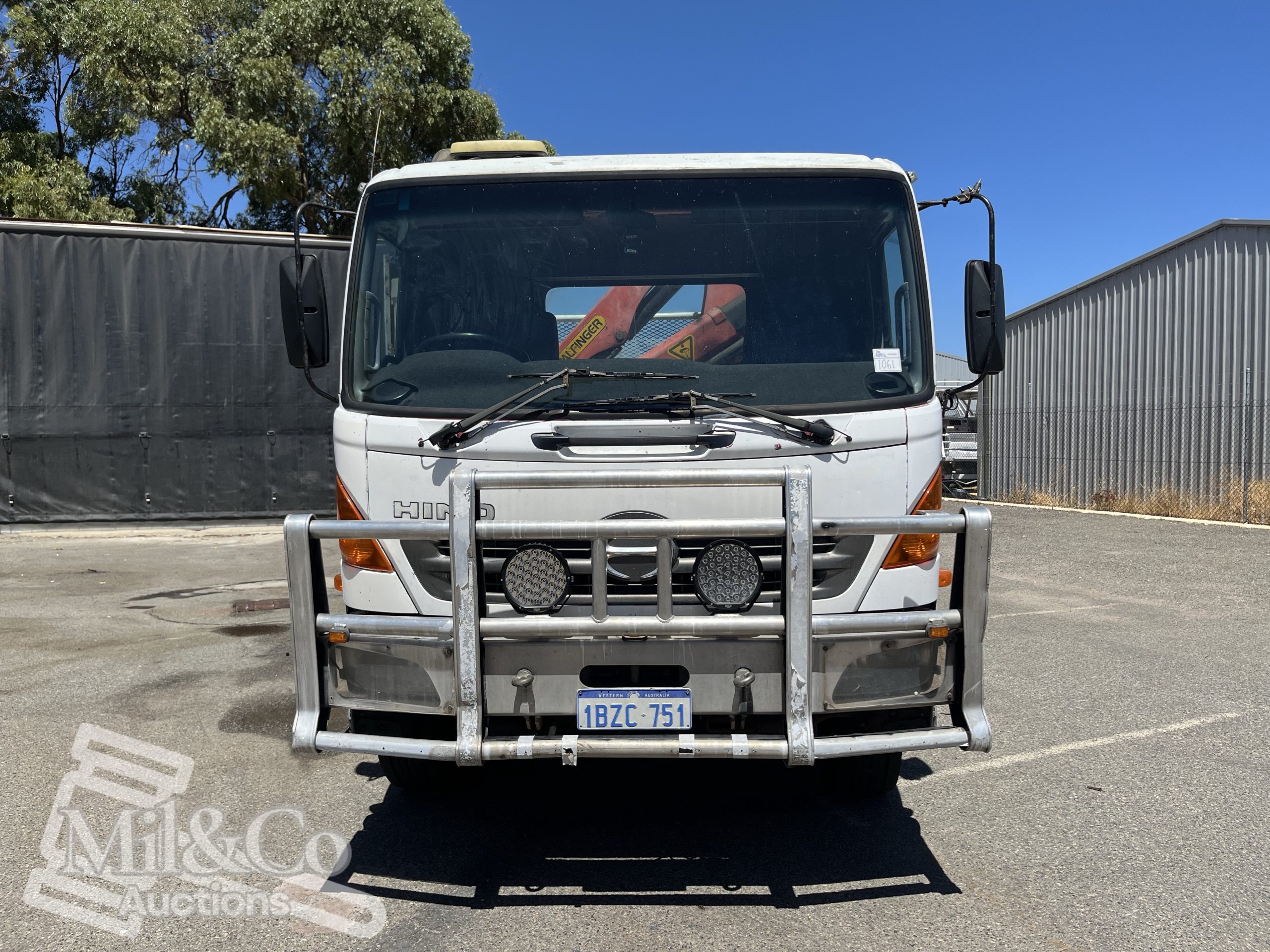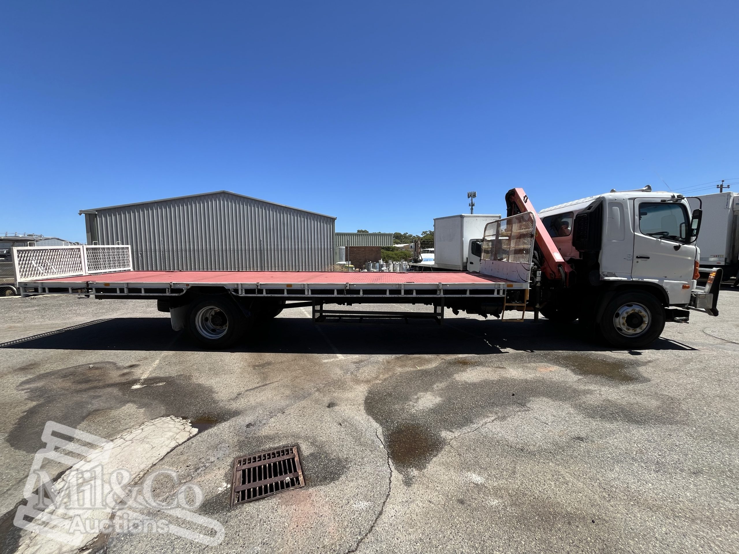 2005 Hino Ranger, 6-speed manual, 16 tonne GVM Tray Back Truck with Palfinger Crane