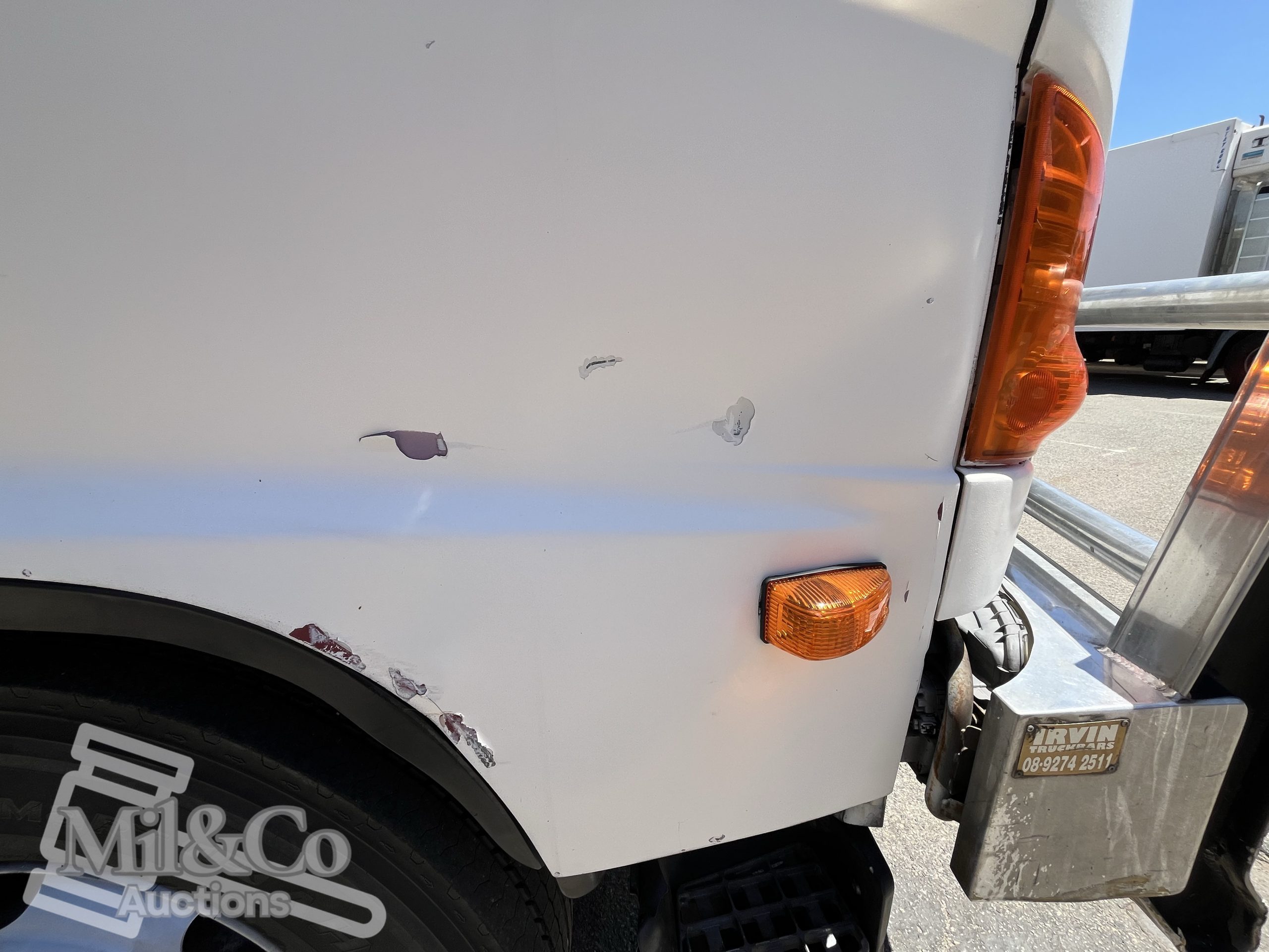 Fitted With: Bullbar, spotlights, beacon, handbrake alarm, undertray storage cages, under tray toolbox, Palfinger PK6500 Crane, container locks